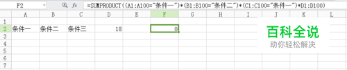 下面就举例子来说明,不然就不好说,可能表达能力有限,看例子,在A,B,C,列中查找,满足条件一,条件二,条件三的行,然后输出E行的值,如果三个条件中一个条件不满足,则会输出0,继续看。