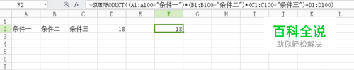 下面是公式,注意问题即星号的链接: =SUMPRODUCT((A1:A100="条件一")*(B1:B100="条件二")*(C1:C100="条件三")*D1:D100)