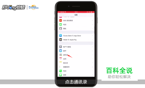 然后在“设置”界面找到并点击打开“通讯录”。