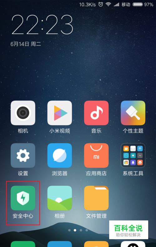 首先,请大家打开MIUI8桌面上的“ 安全中心”应用,点击该应用图标之后即可打开安全中心应用主页面。