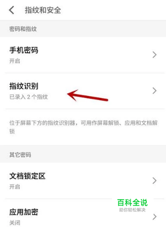 在指纹安全设置界面中,选择【指纹识别】,给手机系统录入个人指纹安全信息。