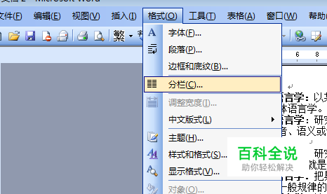 选择格式按钮,点击分栏工具