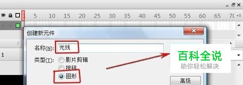 “Ctrl+F8”新建一元件,名称为“光线”,类型为“图形”。