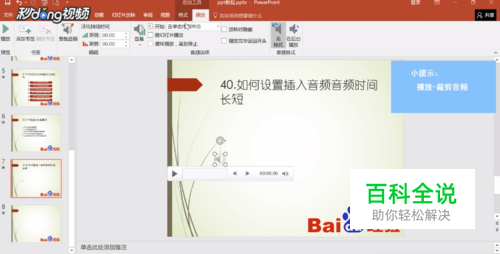 PPT中如何设置插入音频音频时间长短