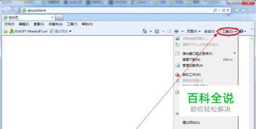 打开IE浏览器,依次选中菜单项 工具-- Internet;进入Internet选项界面。