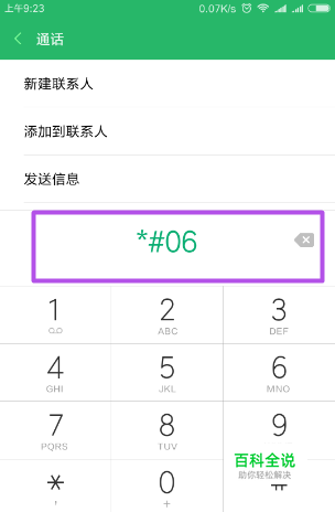 然后在拨号界面,输入“ *#06# ”就会自动弹出IMEI码了。