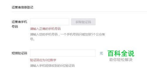 填写运营者信息登记:输入运营者手机号,并填写收到的短信验证码, 单击“继续”,弹出“主体信息提交后不可修改”的提示,单击“确定”。