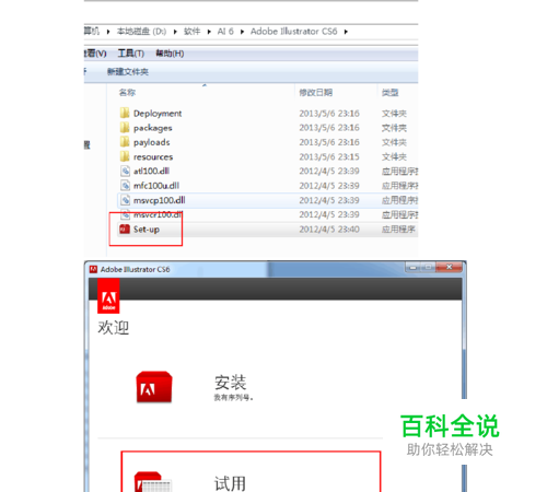 4、接下来在选项Adobe Illustrator CS6文件上单机下,在右边把Adobe hel消,言是简体中文,把软件安装目录设置成你要设置的地方。点击安装 ,安装成功之后打开破解文件,解压之后得到32位与64位的破解文件。