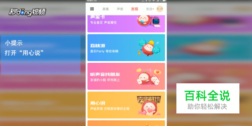 点击上方的发现选项,向下滑动找到用心说并点击打开。