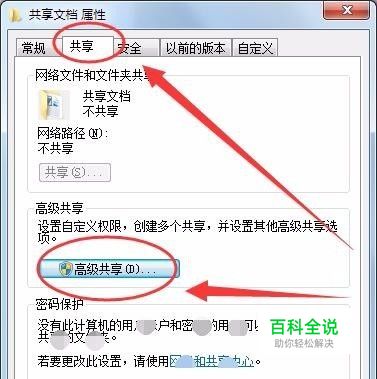 共享选项卡中,选择高级共享按钮。