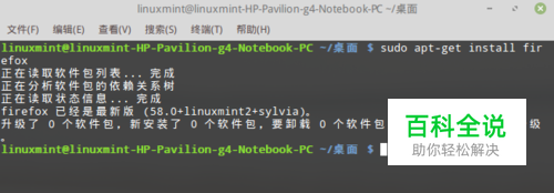 命令行安装是最方便简单的事情。 只需一行命令就可以安装你想要安装的软件。当然,前提是软件仓中有的。 终端: sudo apt-get install firefox 输入完回车输入密码 注意:这里的密码是不显示的,输完直接回车就可以了 优点:速度快,简单,基本不会出错 缺点:软件版本和仓库有关可能不是官方的最新版本
