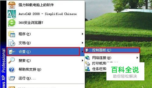 “开始—设置—控制面板”(双击我的电脑或者计算机也可以找到控制面板)。如图: