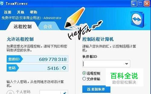 受控电脑端打开这个软件,会显示ID和密码。