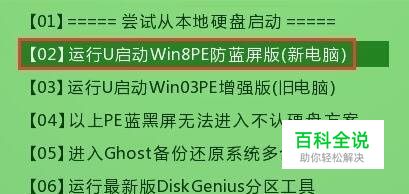 将制作好的u启动u盘启动盘插入电脑usb接口,然后设置好开机启动项执行u盘启动(详细参考“电脑怎么进bios更改启动顺序”),进入pe系统主菜单界面,选择“【02】运行u启动win8pe防蓝屏版(新电脑)”,如图: