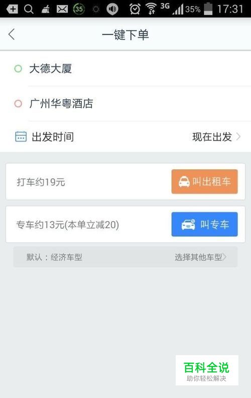 随便输入一个本市要去的地址,会出现打车字样