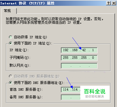 3)接着来设置我们刚刚的“USB连接”,右键打开属性窗口,双击“internet协议”,将里面默认的ip地址(192.168.0.1)修改为192.168.42.1,下面的DNS建议设为114.114.114.114。其他的不用填。最后确定。如图所示: