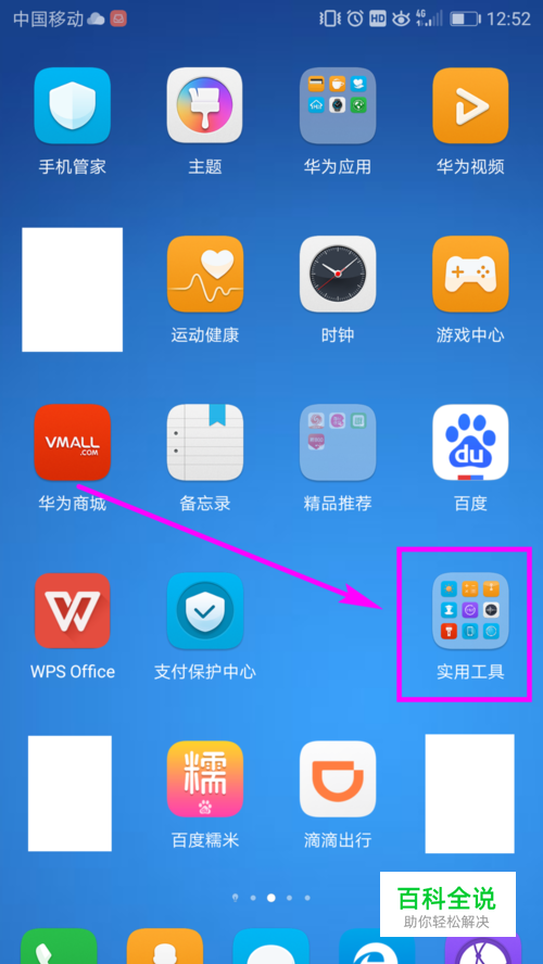 打开手机,在手机桌面上找到并单击【实用工具】文件,如图所示。