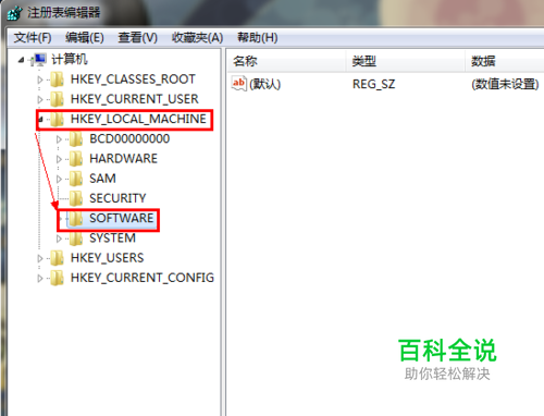 在打开的注册表编辑器中选择HKEY_LOCAL_MACHINE——SOFTWARE