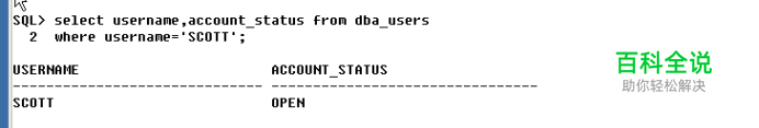 通过数据字典dba_users查看现在scott账户的状态,如下: