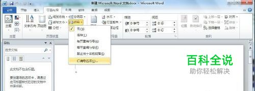 打开word文档,单击菜单栏的“页面布局”选项卡,在页面设置功能区单击“行号”的小三角按钮