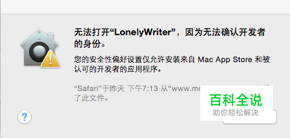 无法打开“LonelyWriter”,因为无法确认开发者的身份。