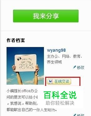 在相关作者资料处,看到的是离线留言状态。(小编此处以经验作者为举例)