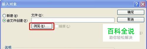 插入的文件可以自己新建一份,如果是要插入已有的文件,直接点击浏览去找到该文件,如下图示: