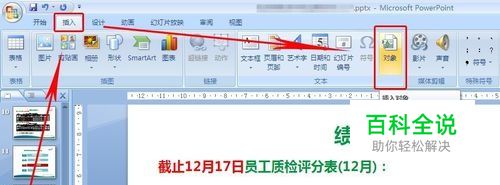 Microsoft Office PowerPoint 2007文件里插入对象的方法: