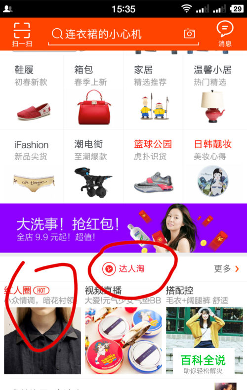 打开手机淘宝客户端,拉到最下面,有一个达人淘,在达人淘下面有一个红人圈,点击进入。