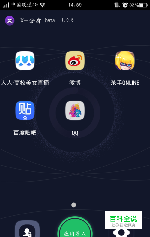 点击下方中间的”应用导入“,选择你要导入的应用微信,再点确认。