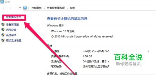 看最左上角,有个“控制面板主页”,点击进入控制面板界面。