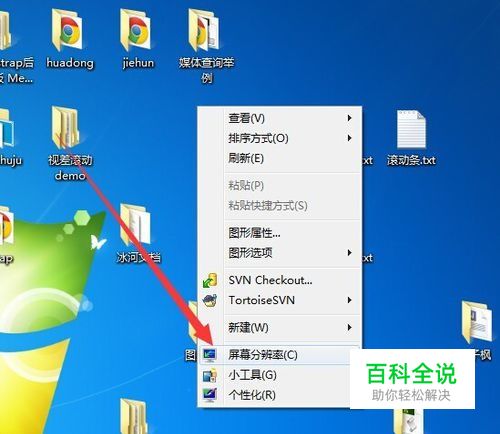 首先在电脑桌面空白处右击,在弹出来的菜单中选择“屏幕分辨率”选项。