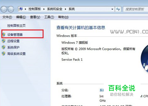 打开系统属性后,点击进入上角的【设备管理器】,如下图所示。