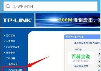将画面移动到左侧,点击菜单栏的无线设置,展开菜单。点击无线设置的二级菜单中,无线安全设置