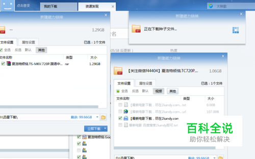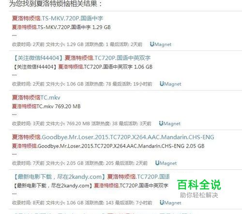 点击六七个左右的搜索结果下方的Mangnet(见上图),迅雷就自动下载相应的结果。