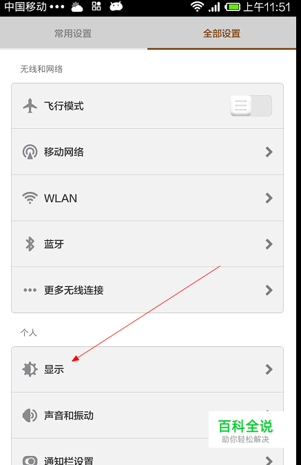 选择“设置”之后在界面上方选择“全部设置”。选择之后在界面中间找到“显示”。