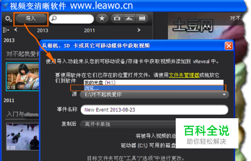 先将需要编辑的视频“导入”,或选择“文件夹管理器”游览查找电脑中的文件。