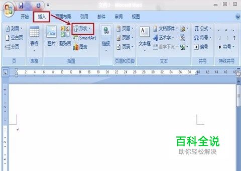 如果我们现在想在空白处插入一个箭头,首先可以在word上面的菜单栏中点击【插入】,然后点击“形状”
