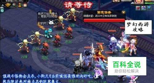 本场紧急任务需要消灭掉三个后排的天兵,主要是三个天兵的伤害太高了。当回合我们的操作都结束后,天兵都会对我们任意一个成员进行攻击(好像是大招,不是技能),天兵受到的伤害越多,对我们造成的伤害就越高。凌波城的怪很多,所有怪可以封,怪物类型全为物理的,凌波城和狮驼都有。三个天兵的气血比较多,其他喽啰伤害不太高,因为对方全为物理的,本方宝宝可能吃不消,所以队伍一定要做好完全的准备,之前提醒携带的特技是非常有用的。