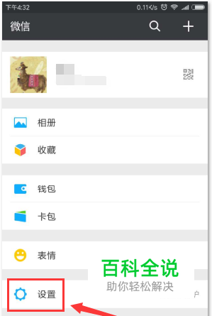 点击微信菜单栏的【我】--【设置】,进入设置选项;
