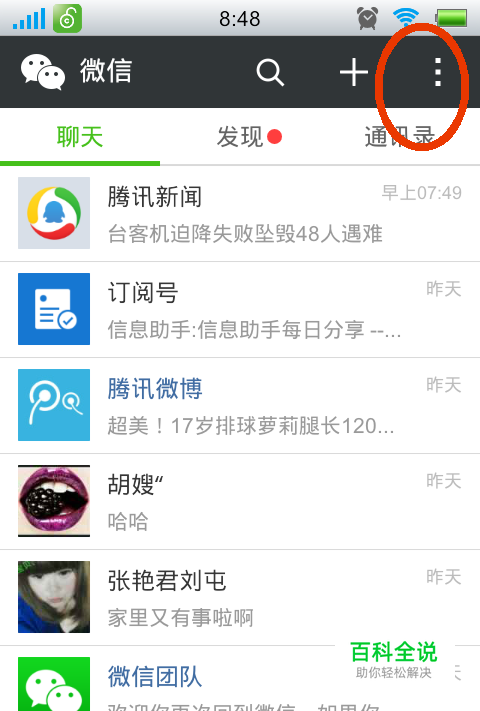 首先要在手机上面登录到自己的微信账号,然后点击屏幕右上角的三个小点,如图所示: