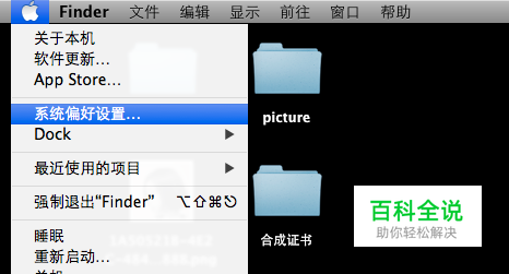 在系统桌面的左上角点击苹果图标,点击“系统偏好设置”。