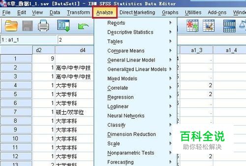 spss中打开数据,为了对多项选择题进行频次分析,先要设定一个变量集,因为在spss中,多项选择题额答案不能直接输入,只能将每一个变量当作一个单项选择题,每一题有一个答案或者没有答案。我们先要做的就是将所有的选项构成的单项选择题组成变量集,如图所示,在菜单栏上执行:analyze--multiple response--define sets