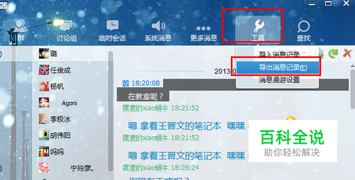 首先,我们可以点击“QQ2013”版本的 消息管理器,然后选择我们的一个好友,点击 查看聊天记录。