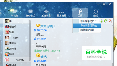 这里,我们点击“ 工具”,然后选择 “导出聊天记录”,这里我们选择“ 保存为网页模式”,然后文件格式为mht,大家可以看到,这里给大家提供一个截图。