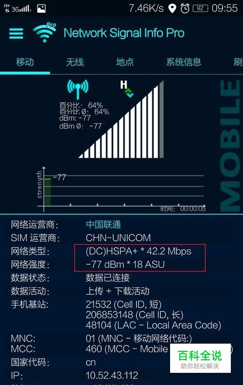 在确定好着这两条数据以后,查看下面的手机基站那一选项。如下图所示: 21532(cell id短) 这个是基站的十进制小区码 48104(lac-local area code)这个是基站的十进制基站码 用笔记下这两个数据,后面会用到这两个数据。