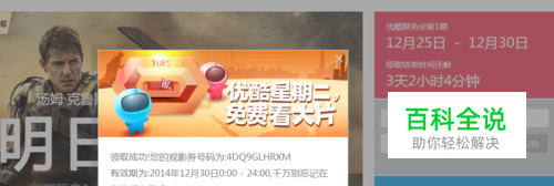 注意!别贪心,每期领券周期内,同一用户最多只能领取一次观影券。注:同一优酷账户或手机号均视为同一用户。