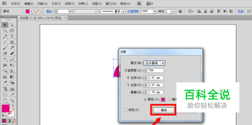选定了投影的颜色,再在投影设置面板上点击确定按钮