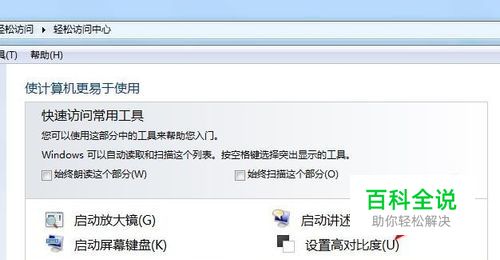 有时候由于光照原因,我们看不清键盘以及屏幕上的按钮。这时候,我们可以启动笔记本电脑的辅助功能。我来说一下怎么启动电脑的辅助功能。电脑的辅助功能,用术语说就是“高对比度”