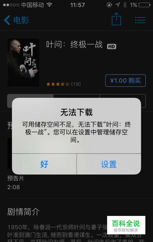 进去之后,我们随便找到一个电影,(电影大小一定要比可用容量大,否则无法清理),随便找到一个电影后我们点击下载,PS:有的显示要花钱购买,无所谓,我们直接点击购买,不会扣费的,放心,因为你也根本下载不下来,你内存不够 哈哈 所以不用担心哦